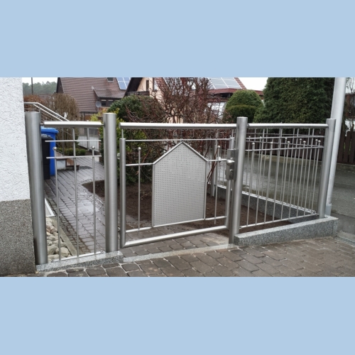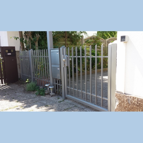 Tor 73-3 hochgeladen: 15 Sep 2016 aufwendiger Edelstahl - Zaun mit Eingangstüre und Briefkasten