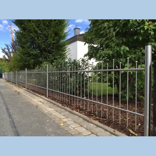 Zaun 633 hochgeladen: 5 Feb 2018 Edelstahlzaun Edelstahl-Rundrohr - mit Edelstahl-Zierblechen - Granit-Säulen